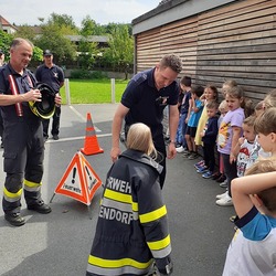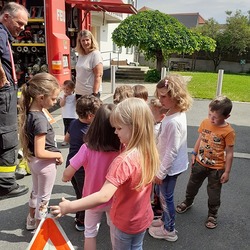 Im Anschluss zur alljährlichen Räumungsübung durften die Kinder die Feuerwehrautos besichtigen und erfuhren von den "echten" Feuerwehrmännern der FF Hitzendorf, was alles für einen Einsatz gebraucht wird.