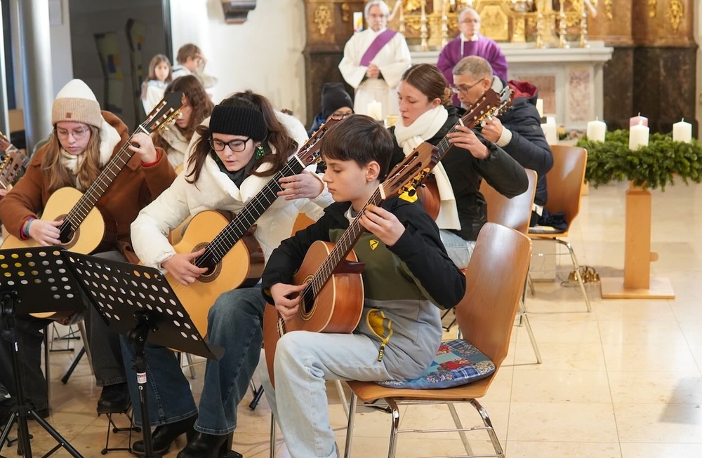 Mit viel Gefühl stimmten die jungen Musikerinnen und Musiker mit ihren Gitarren in die Adventzeit ein und bereicherten mit ihren Stücken die heilige Messe, die Vikar Norbert Glaser, unterstützt von Diakon Michi Zepf, zelebrierte.